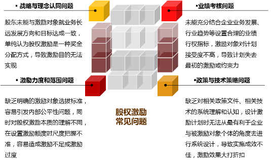 佐佑研究表明,由于股權激勵對企業內部管理基礎、人員理念與組織文化匹配性、戰略方向和目標清晰性等要求較高,企業在實施股權激勵時仍然存在一些共性問題,主要表現在: